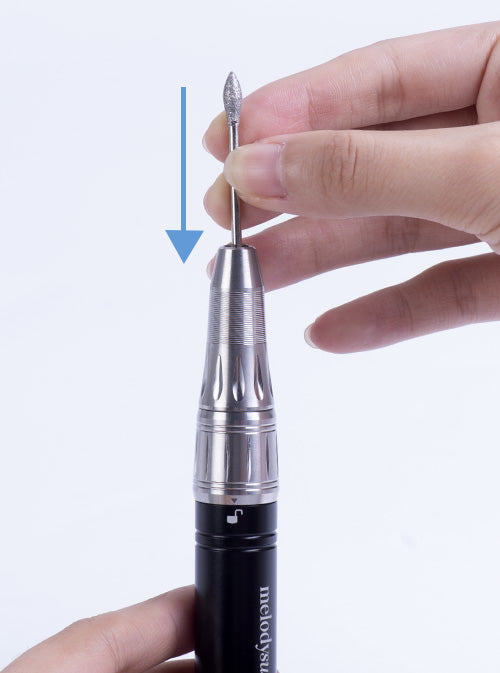 Choose one grinding drill bit, release the handpiece, insert the drill bit into the drill and lock it in place.