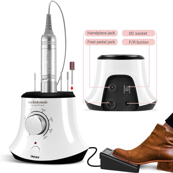 MelodySusie 30000 RPM Professional Nail Drill Scarlet, best corded nail drill of its kind, suitable for all manicures. You’ll never worry about it running out of power in the middle of a manicure. Ergonomic design and easy operation, your best partner for dealing with all kinds of nails. Plus a foot pedal control.