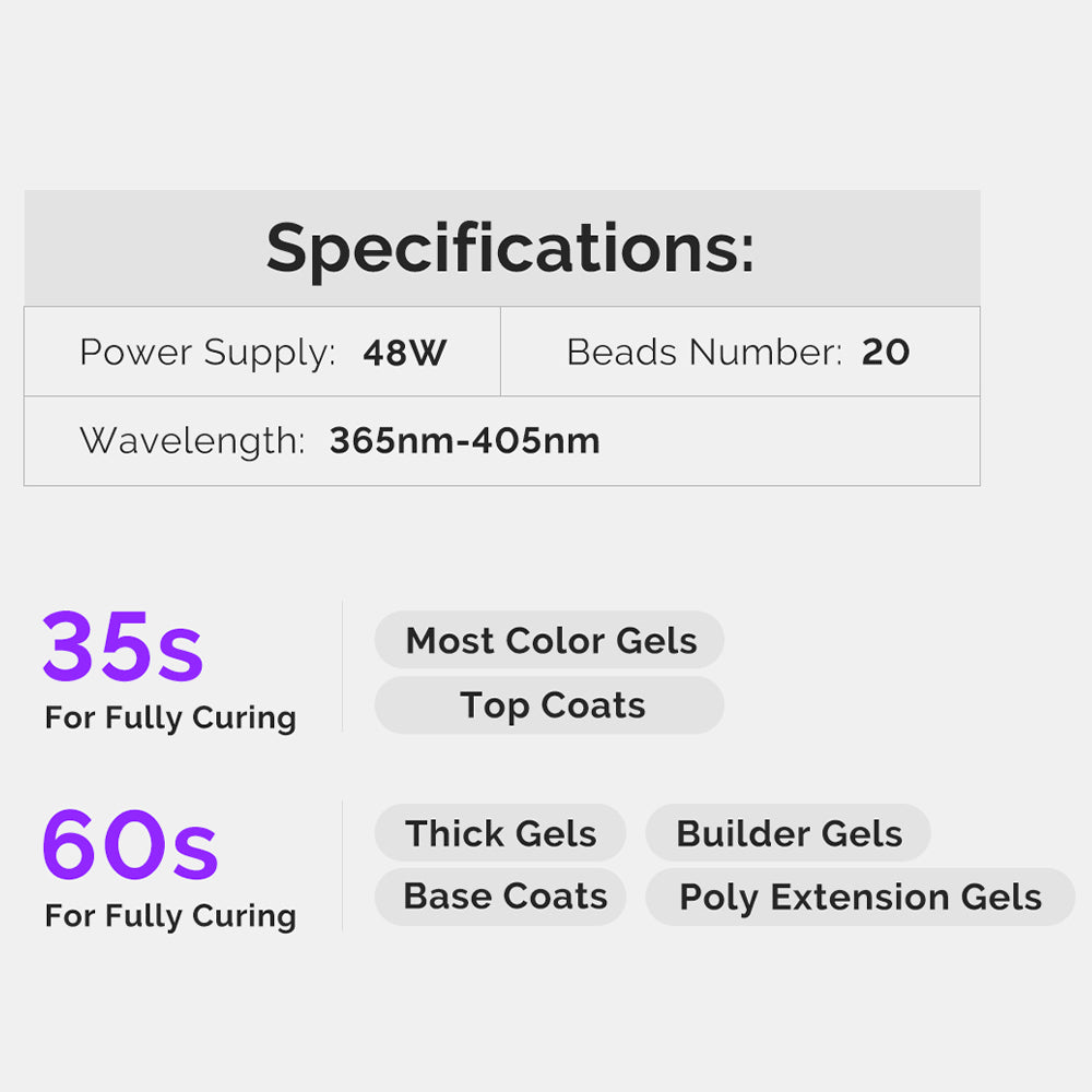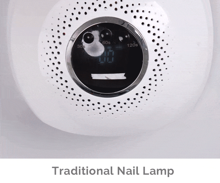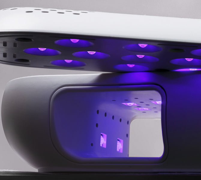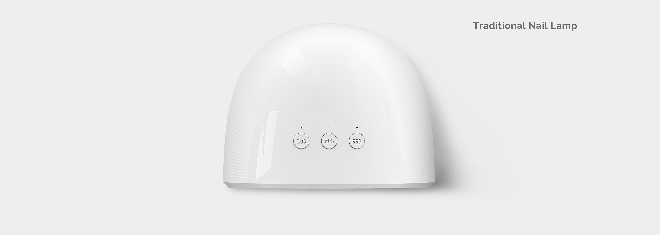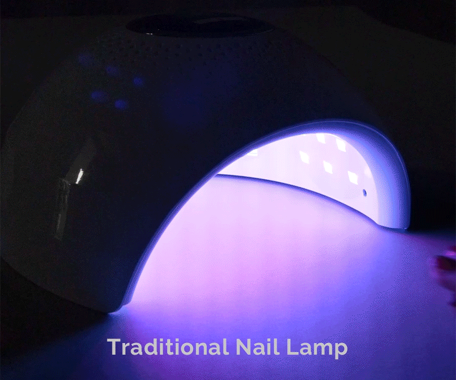 Precise light source focuses on the nail bed, reducing UV coverage.