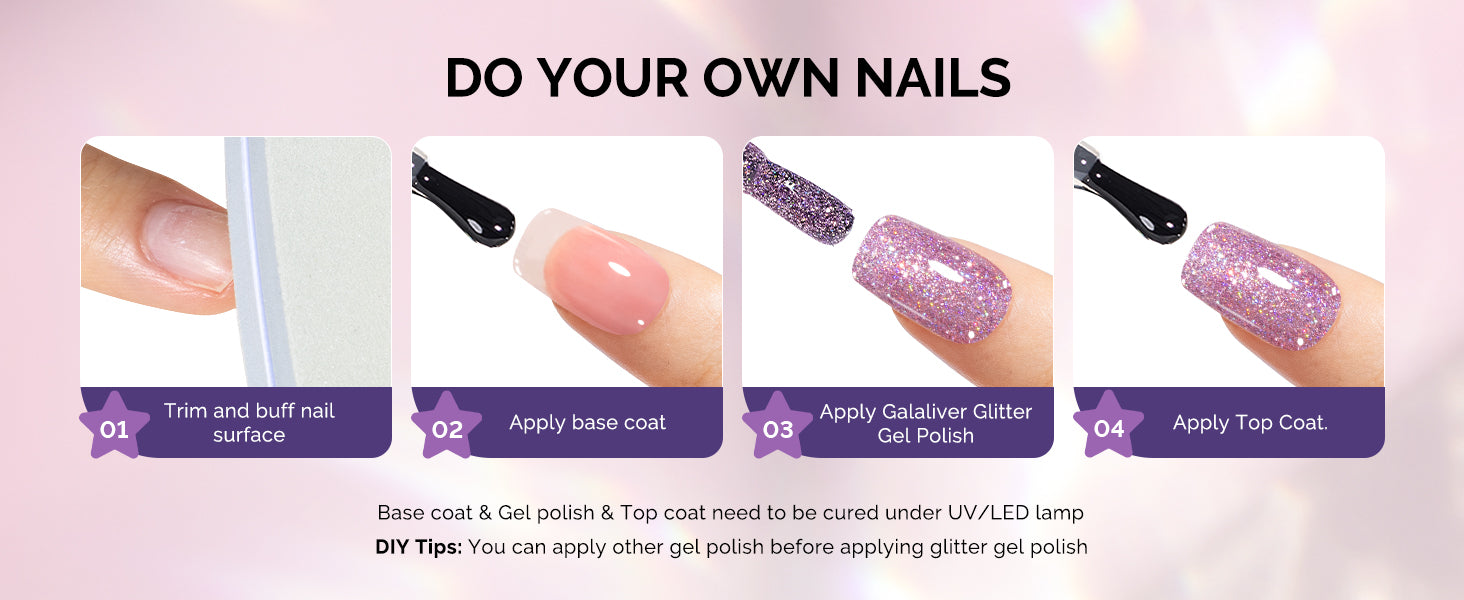 NOTE: May cause an allergic reaction by skin contact inrarecases. Do atest before using it to check for any reaction. Stop using immediately once feelinguncomfortable. Avoid the gel nailpolish contact with eyes, mouth and skin. lf thisphenomenon occurs, wash the affected area immediately with water. lf you feel unwell contac the doctorimmediately. Please also keep out of the reach of children. Anyproblem, please contact us!