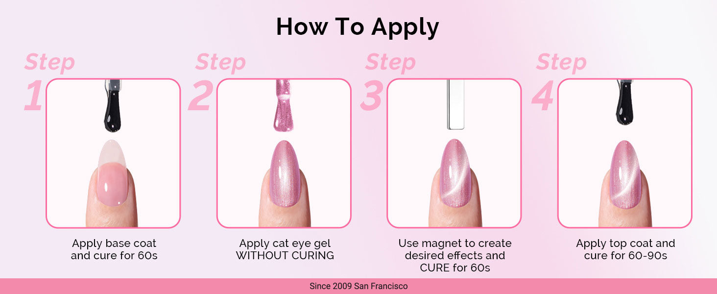 LONG LASTING SHINE: This cat eye nail polish can last for 28+ days with high gloss shine under proper application. This item is UV gel. It should be used with base and top coat, cured under a UV nail lamp for 60-90 seconds, which ensures your nails look flawless for weeks without chipping and peeling.