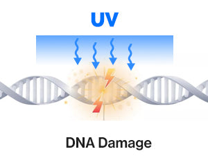 UV photon absorption by DNA and leads the broken, molecules cannot move freely, substance effectively hardens, namely “curing”