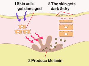 This curing process is induced by UV, energetic enough UV can also result in the production of melanin, namely tanning.