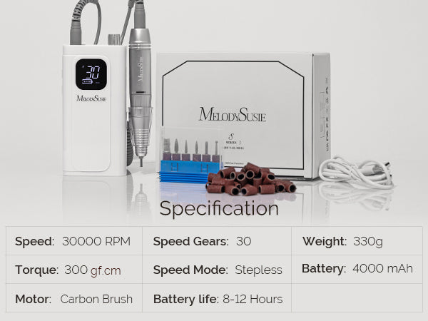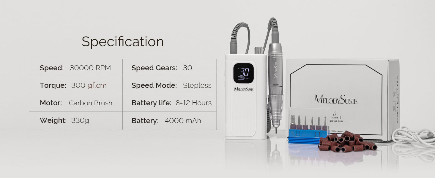 SC300F Clip-On Rechargeable Nail Drill 30,000RPM - White